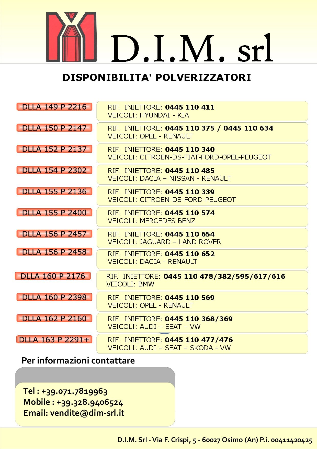 La D.I.M. Srl produce polverizzatori dal 1980 e da 8 anni ha inserito con successo, per tutti i tipi di autovetture e mezzi industriali, anche la riparazione e il controllo di iniettori e pompe common rail, Bosch, Delphi, Denso, Siemens etc., avvalendosi di sofisticate attrezzature.