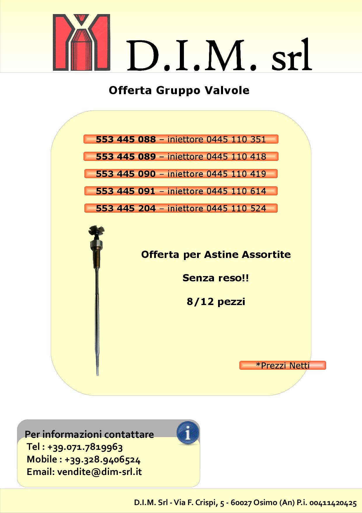 Sempre attenta alla situazione economica attuale, la D.I.M. s.r.l., dedica i suoi sforzi per agevolare e incontrare le esigenze dei propri clienti, con offerte e prezzi concorrenziali e un servizio di spedizione rapido ed efficiente.